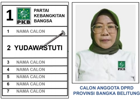 Yudawastuti salah satu calon Legislatif DPRD Propinsi Bangka Belitung dari kalangan perempuan berasal dari Partai Kebangkitan Bangsa (PKB) no urut 2 YUDAWASTUTI, siap bertarung pada Pemilu 2024.