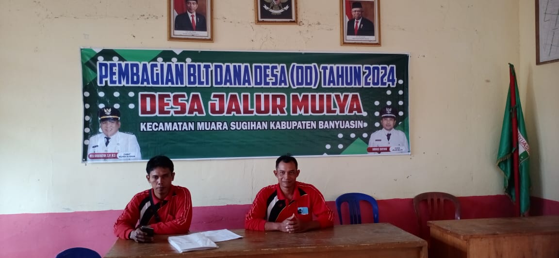 Banyuasin-Penyaluran dana bantuan langsung tunai (BLT DD) tahab 1 tahun anggaran 2024 Desa Jalur Mulya Kecamatan Muara Sugihan Kabupaten Banyuasin Provinsi Sumatera Selatan.