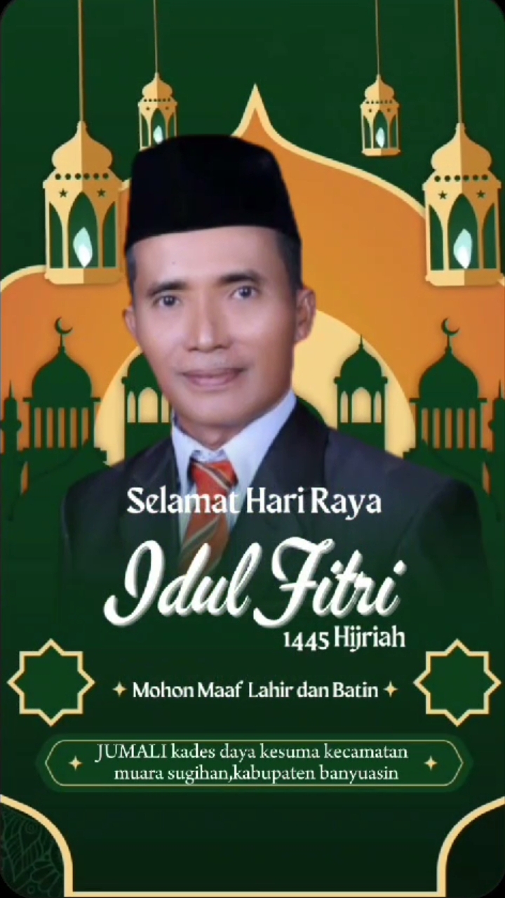 Jumali kepala desa daya kusuma kecamatan muara sugihan kabupaten Banyuasin mengucapkan selamat menyambut hari raya idul fitri 1 syawal 1445 H kepada seluruh masyarakat desa Daya kusuma.